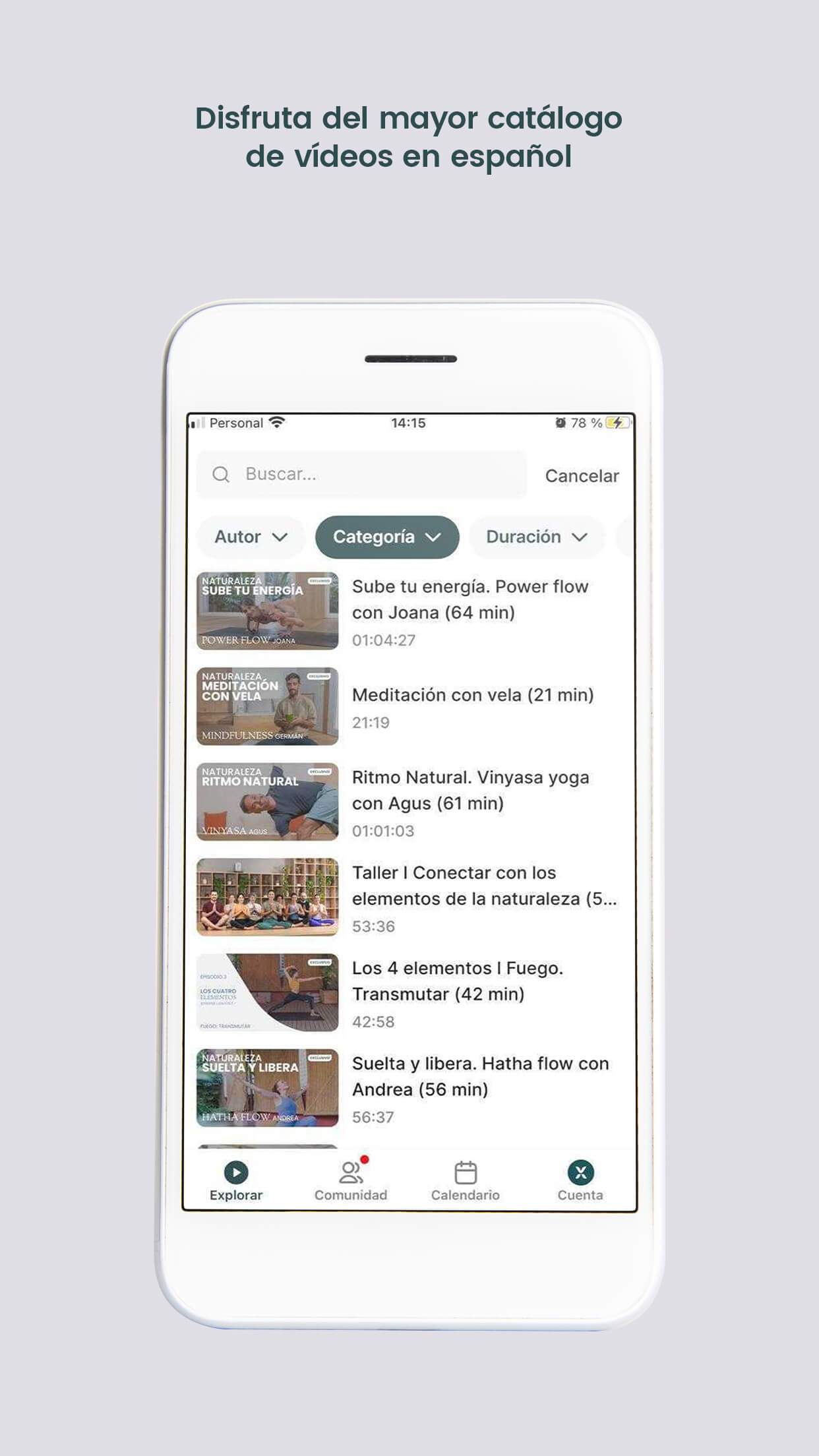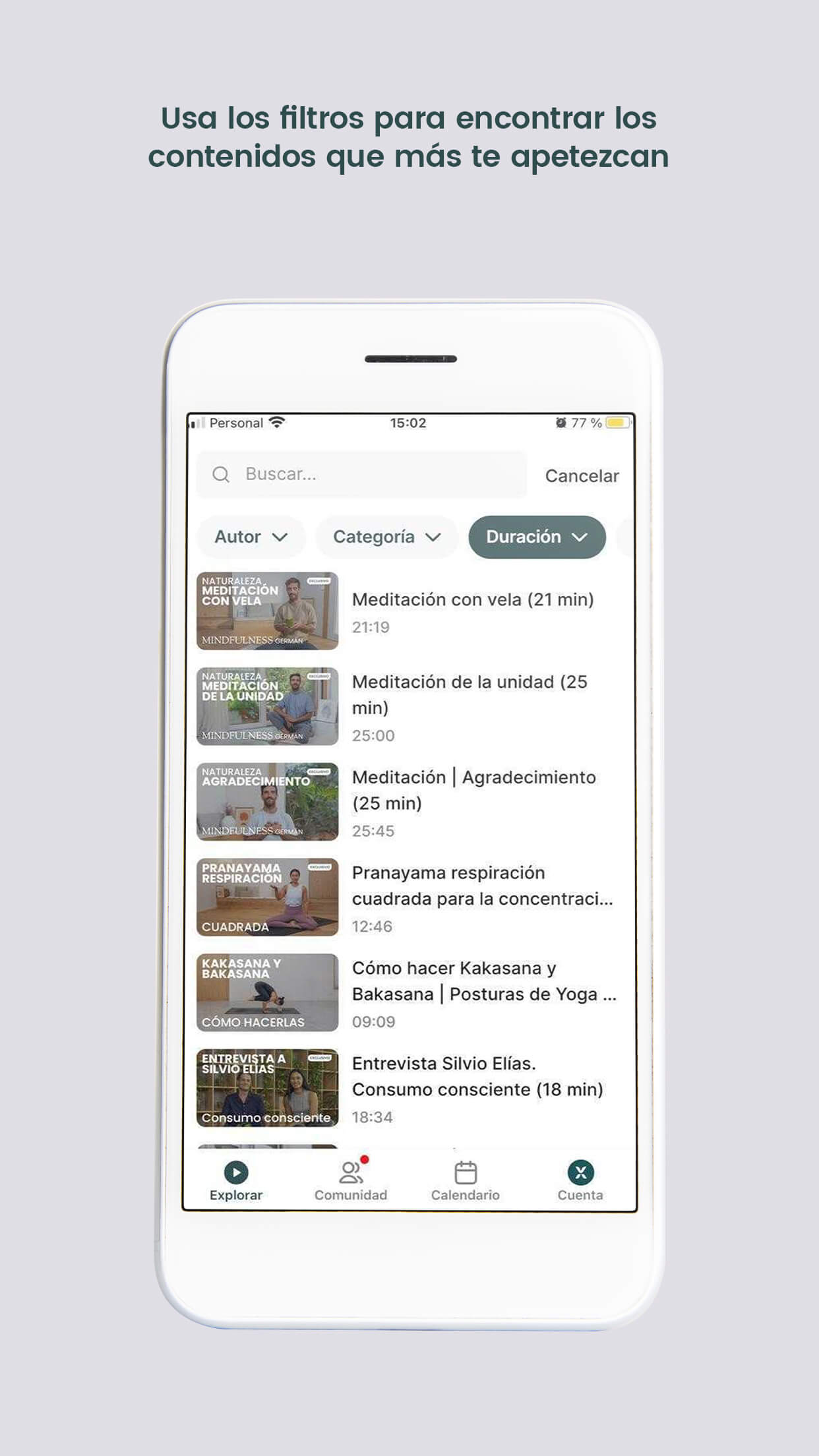 • Tipo de vídeo: clases, meditaciones, entrevistas o contenidos educativos.