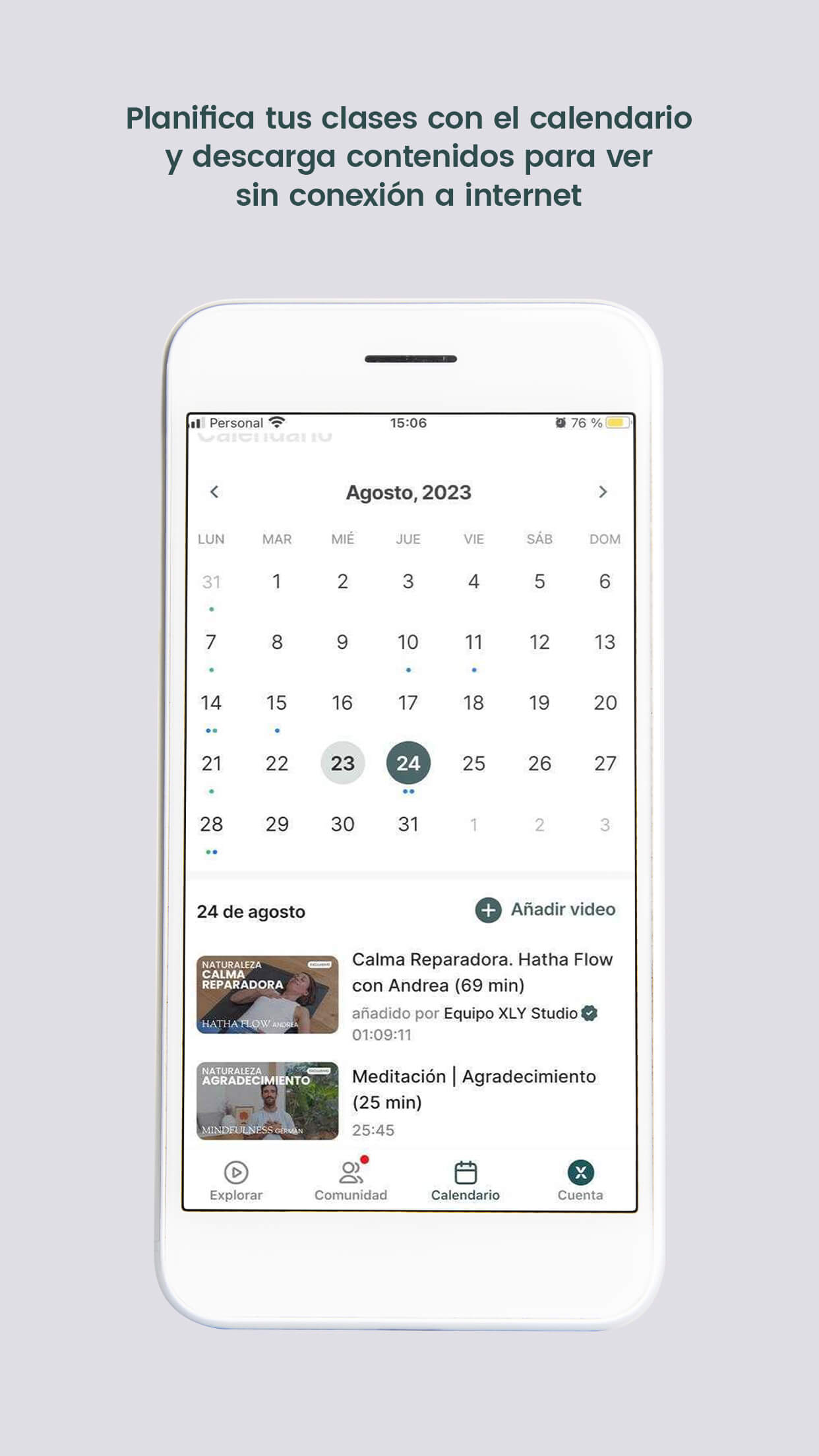 Con la función de descarga, podrás disfrutar de tus clases de yoga y meditaciones sin necesidad de conexión a internet.