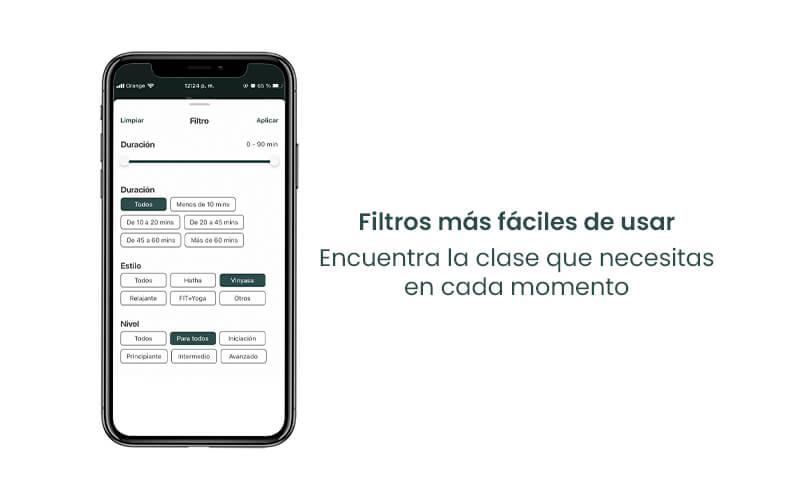 Estos filtros te permiten crear una práctica totalmente adaptada a ti, según tu estado físico, tu energía o el tiempo disponible.