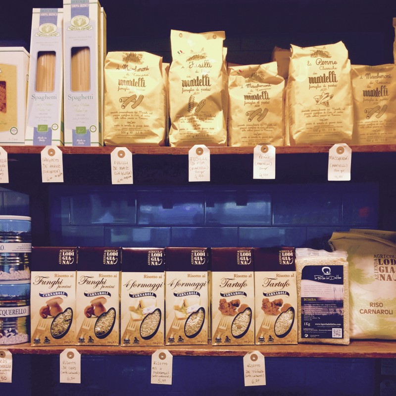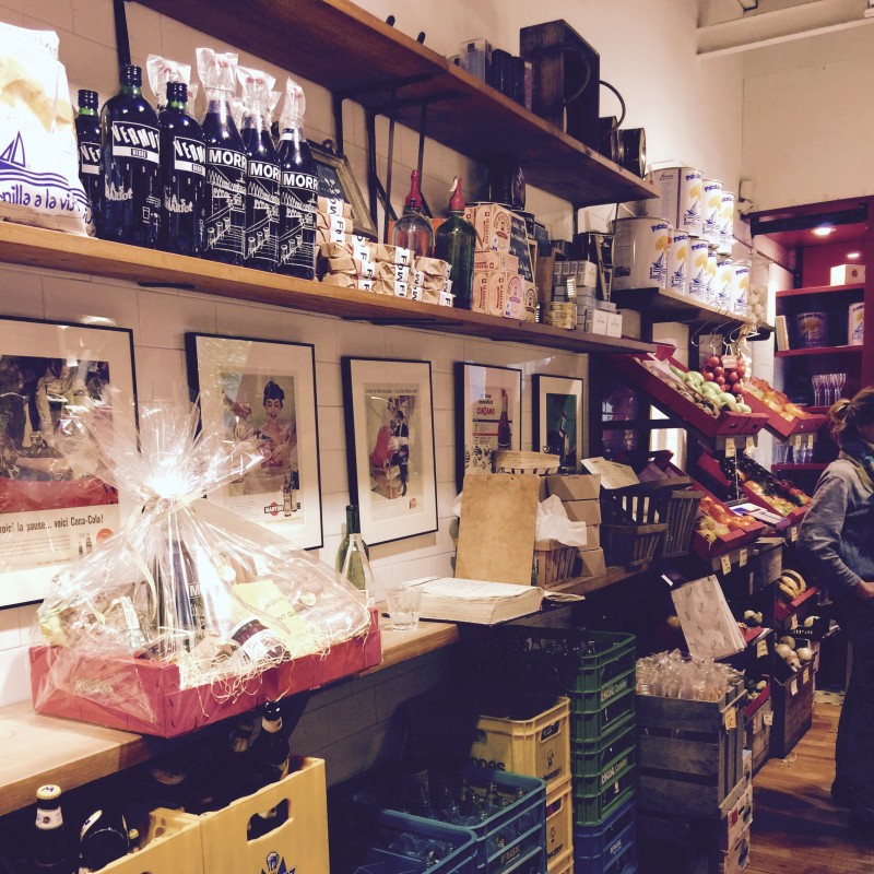 Mi alumna y guapísima amiga Olympia (por cierto, qué nombre más precioso y ella lo lleva muy bien ) me ha llevado a uno de sus restaurantes favoritos, la Cuina d’en Garriga en Consell de Cent con el famoso Paseo de Gracia. Entras en una tienda tipo colmado de productos delicatessen, tes, chocolate, latas,  frutas y verduras bio, quesos y panadería en un ambiente vintage industrial, y a la vez es un bistro chic de productos de primera calidad, la mayoría de Girona, de donde vienen los propietarios, los hermanos Garriga.